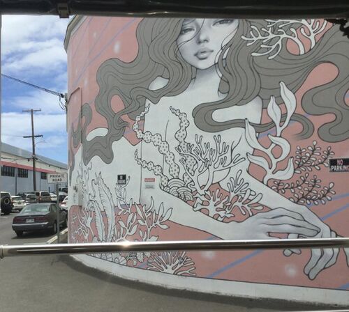 レアレアトロリーに乗って、車窓を楽んだ、昨日のブログの続きです。 もともとは倉庫街だった、カカアコ地区のウォールアートを、レアレアトロリーから見て楽しみました。 車が邪魔だよー。 海! 波か。 人魚。毎年変わるので、いつも同じのが見れるわけでは…